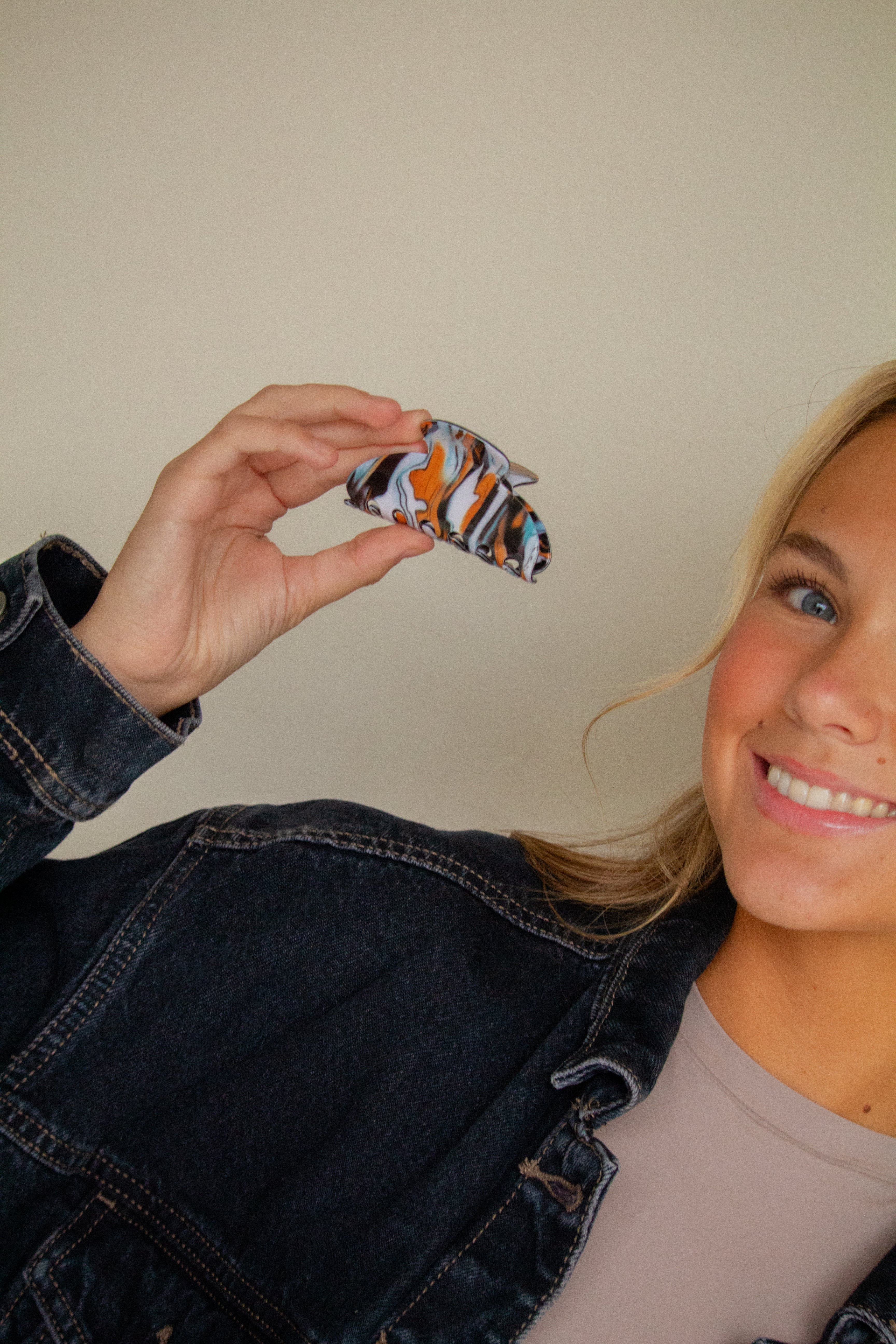 This eerie claw clip is the perfect size, and are the absolute vibe for this time of year! The best way to elevate your updo for the day with this unique look. It's a medium sized claw clip measuring 3 inches long.