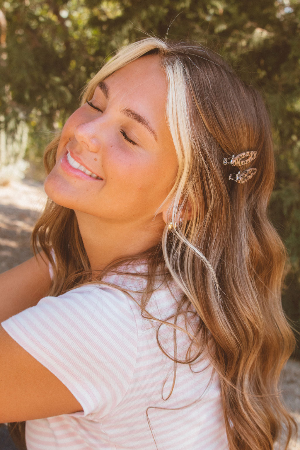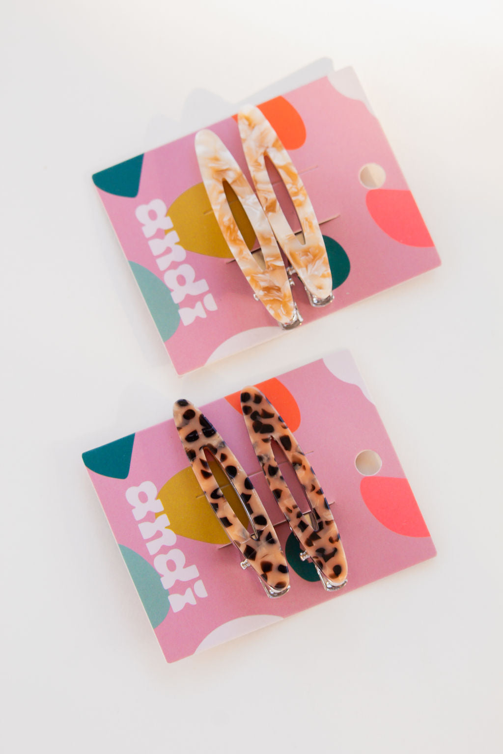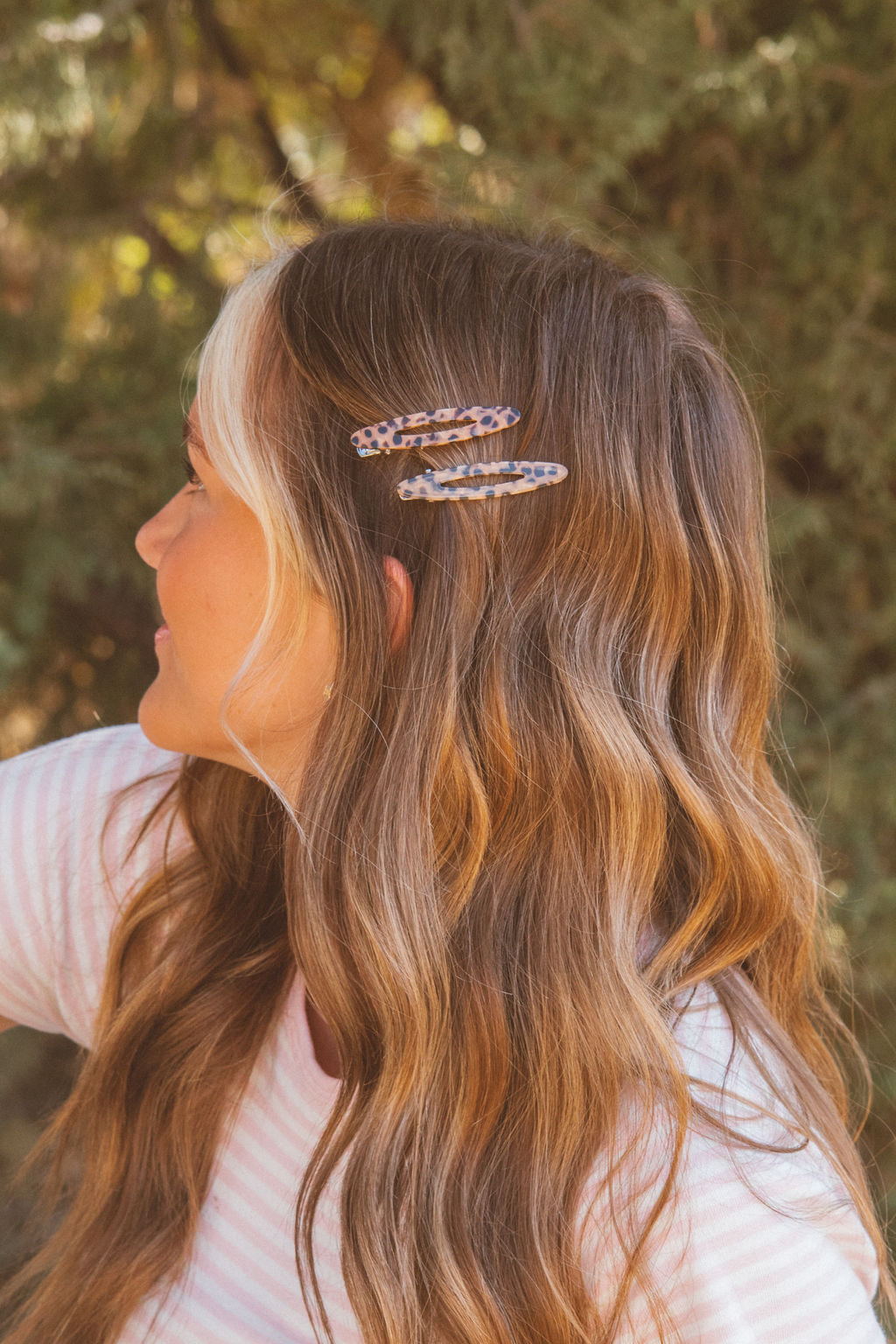 These oval alligator clips are to die for, and are so perfect for this time of year. The best accessory to add to any hairstyle for a little something extra. They are 2.5 inches long and come in a beige marble, leopard, red, and white marble.