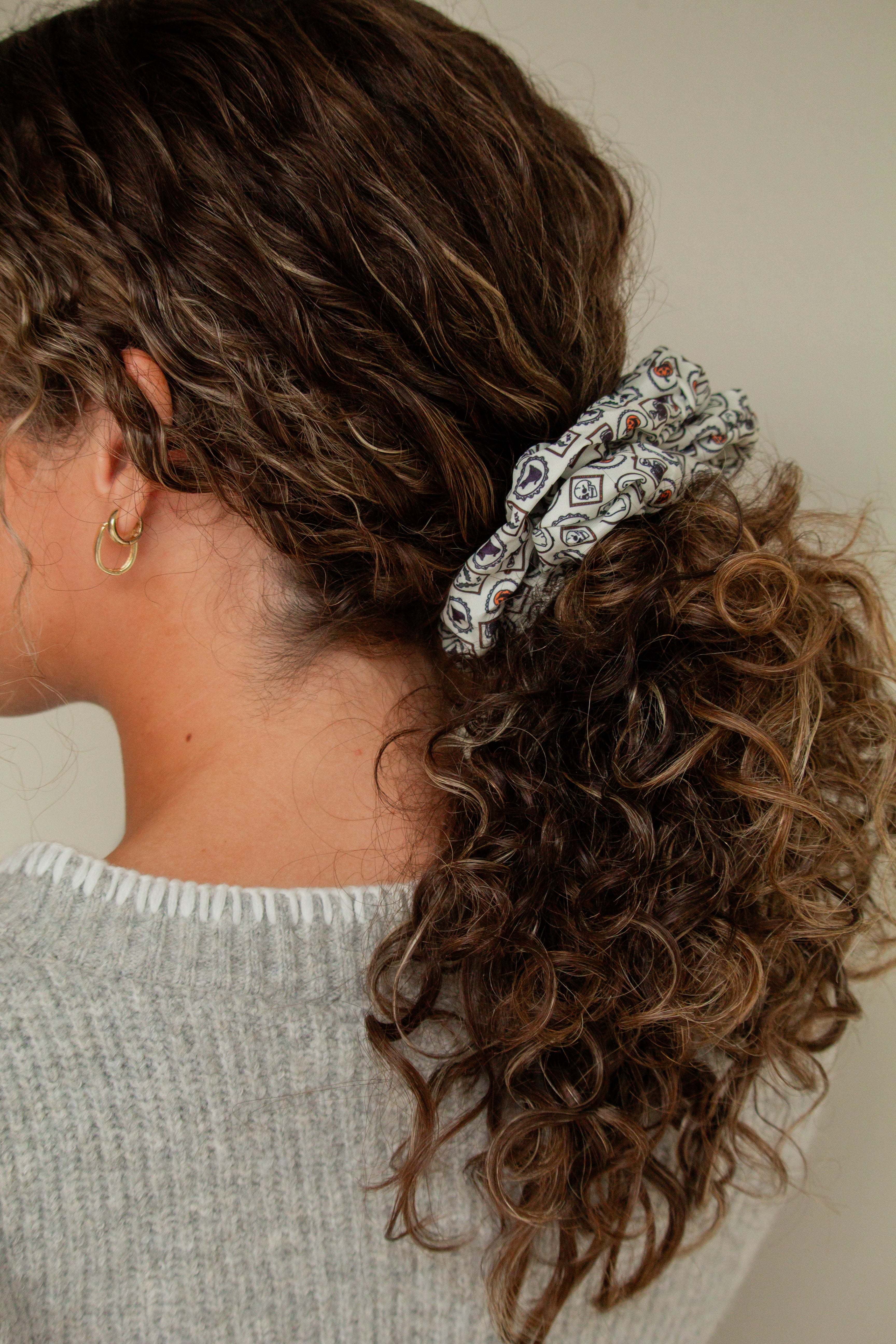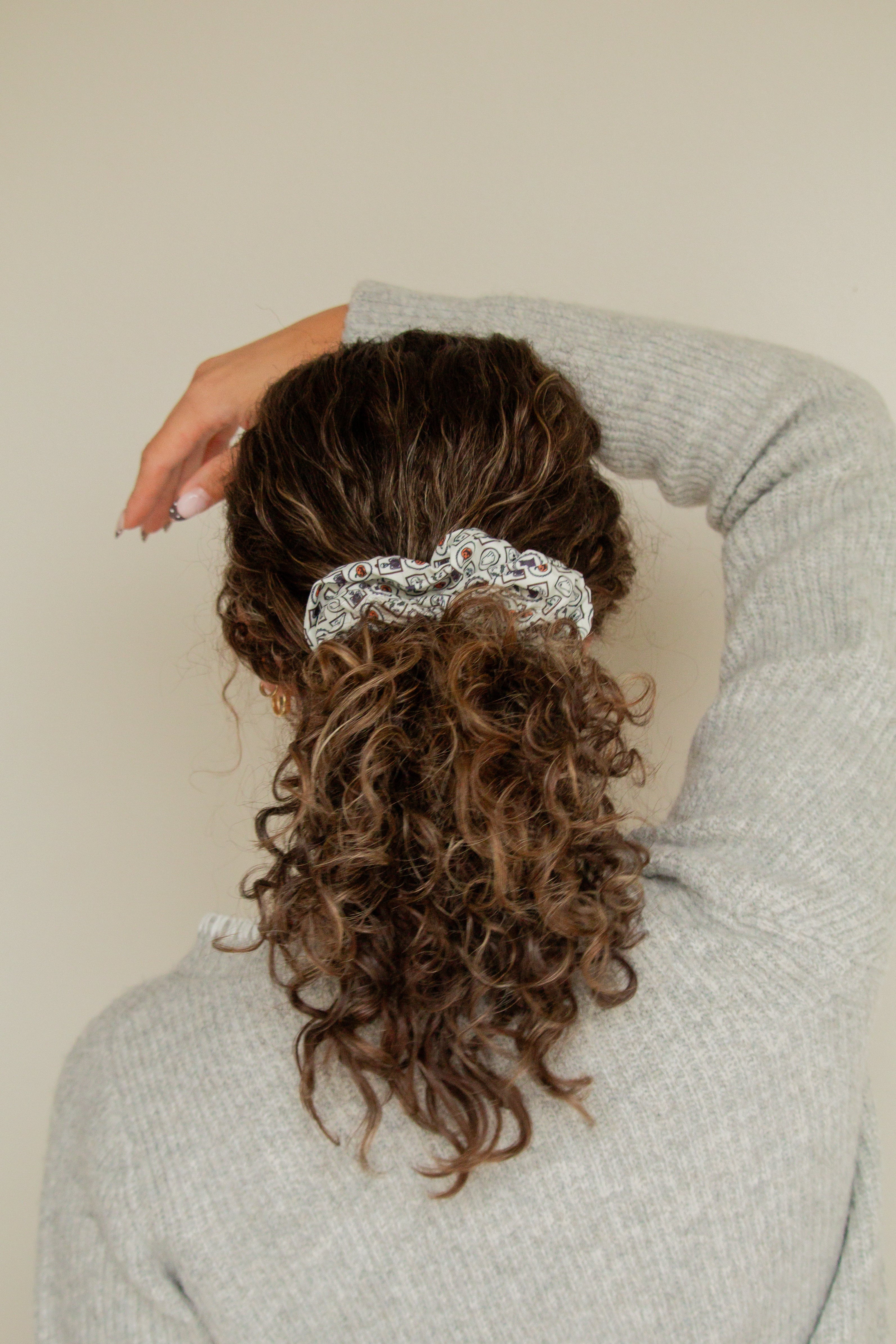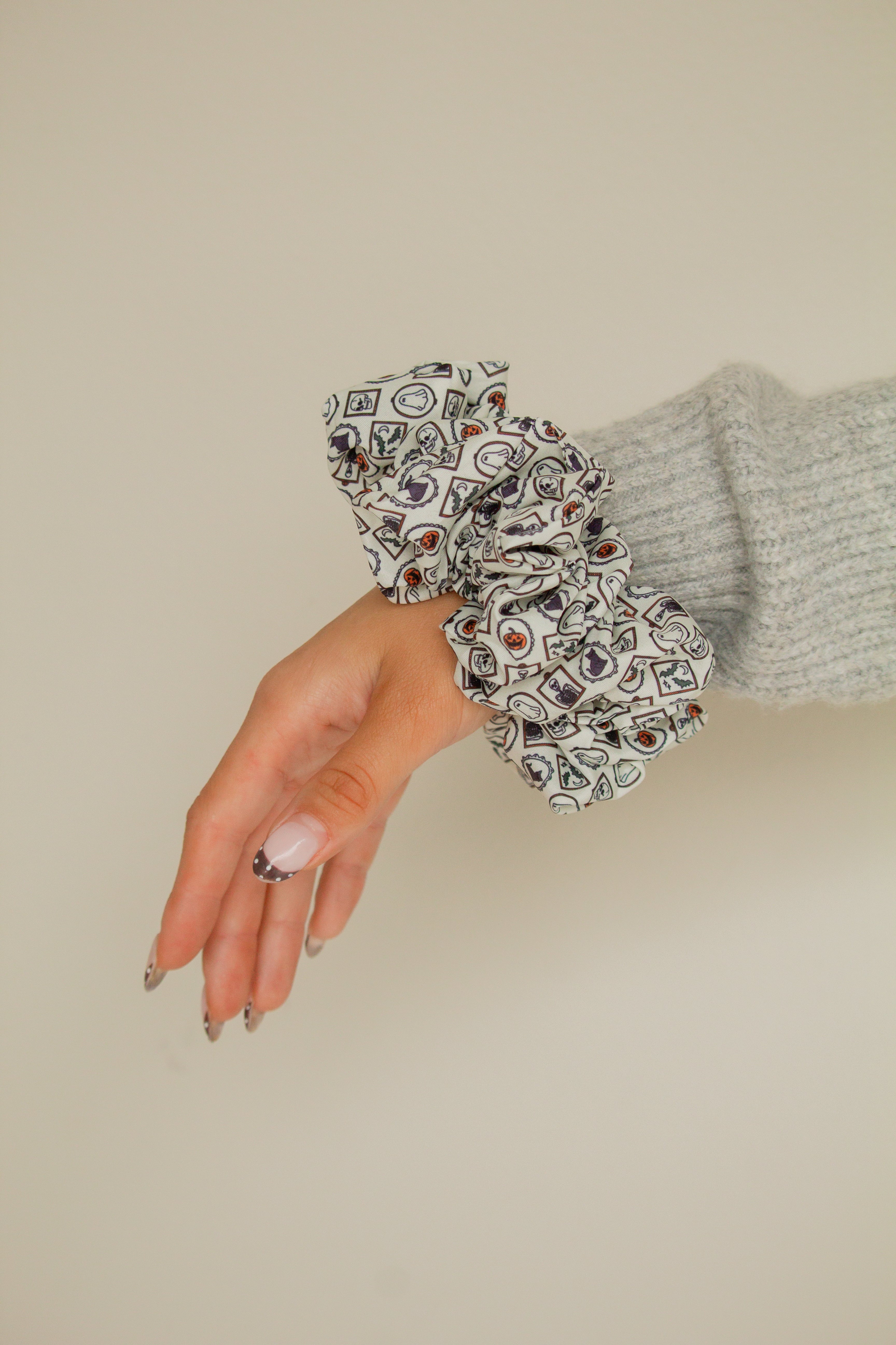This jumbo scrunchie is the cutest Halloween stamped print with the best color combo coming in a nice, durable fabric. The absolute perfect scrunchie to have in your Halloween accessory collection and the cutest addition to your hairstyles this season.