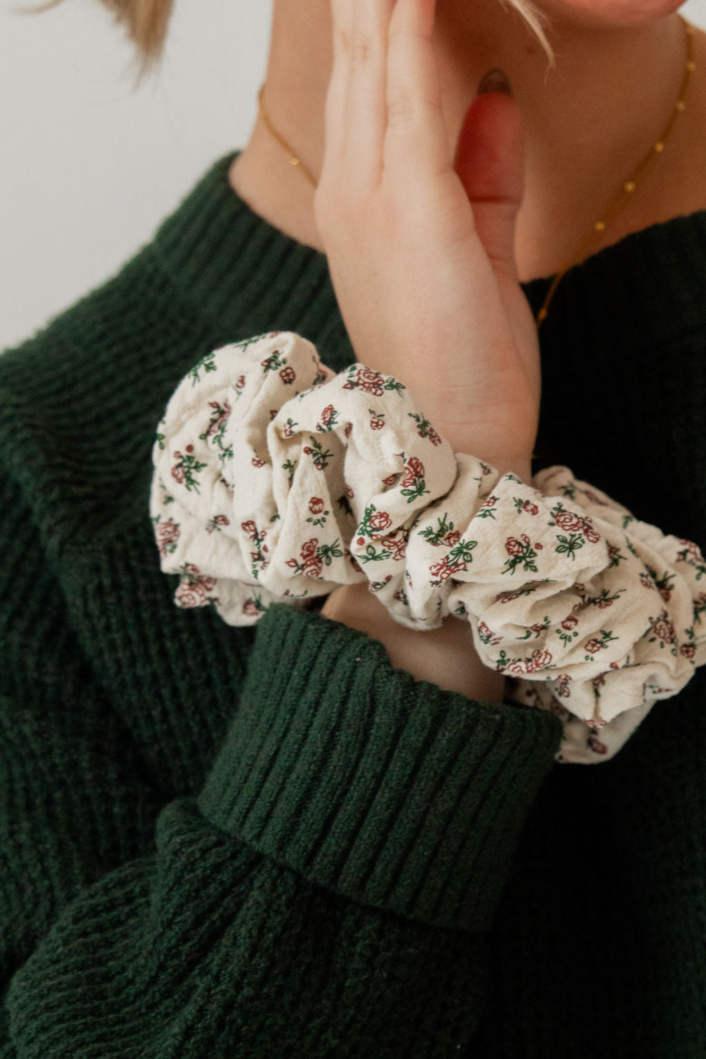 This jumbo scrunchie is the perfect addition to your holiday looks this year! It's the perfect red and green floral pattern and the cream background ensures it'll easily match with your look! We're obsessed.