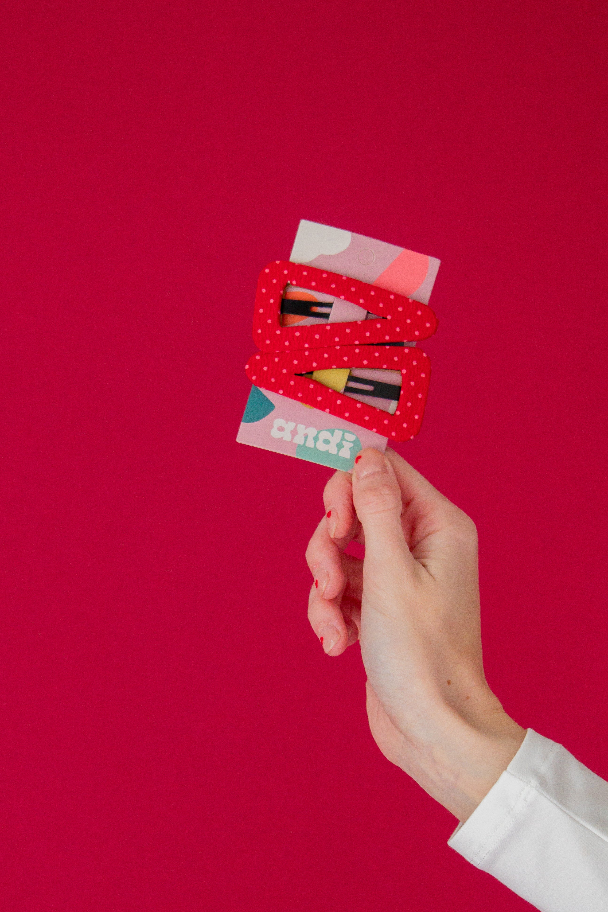 These snap clips are to die for, and are so perfect for every hairstyle and outfit. The cutest red and pink color combo is absolutely adorable for Valentine's. The best accessory to add to any hairstyle for a little something extra.
