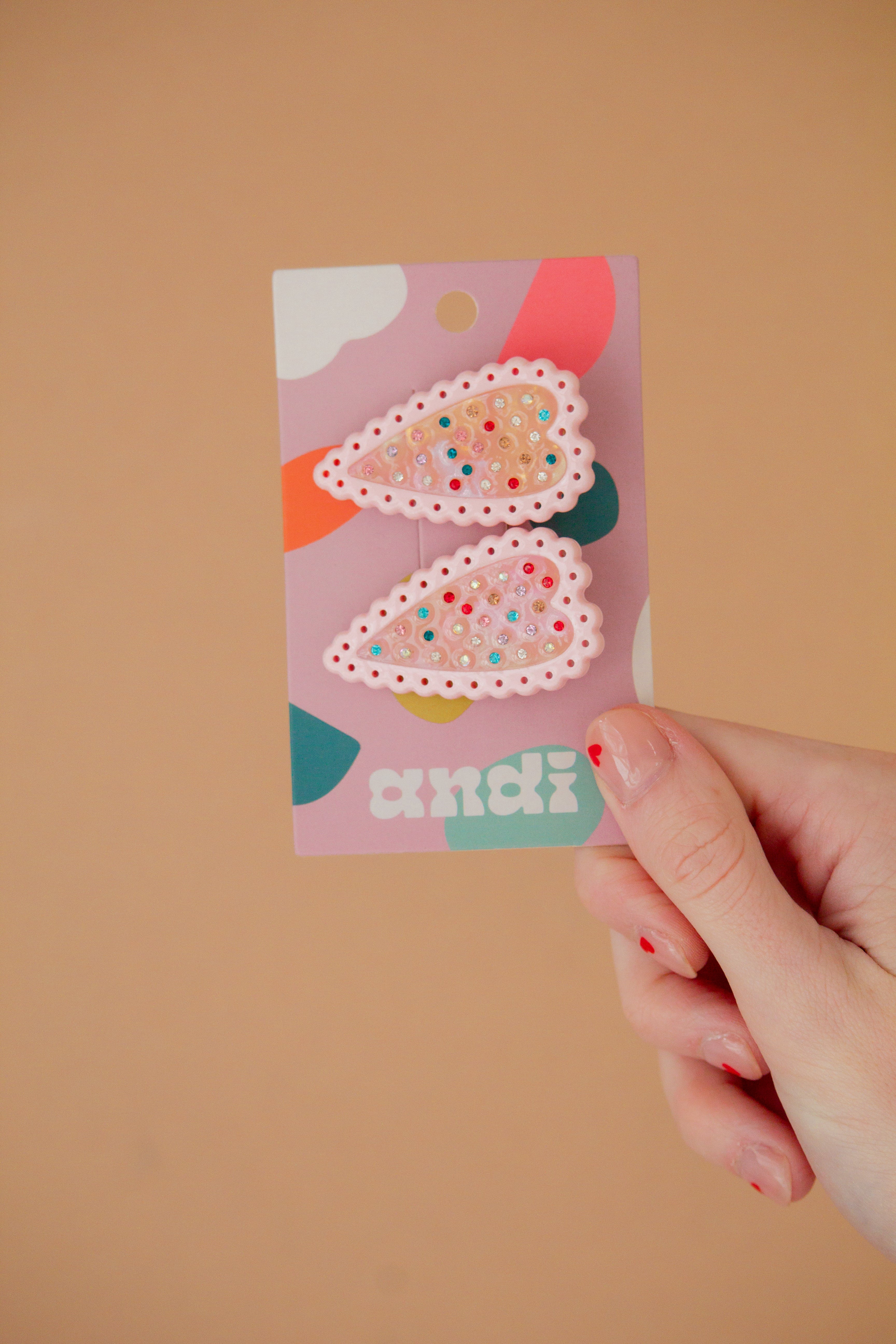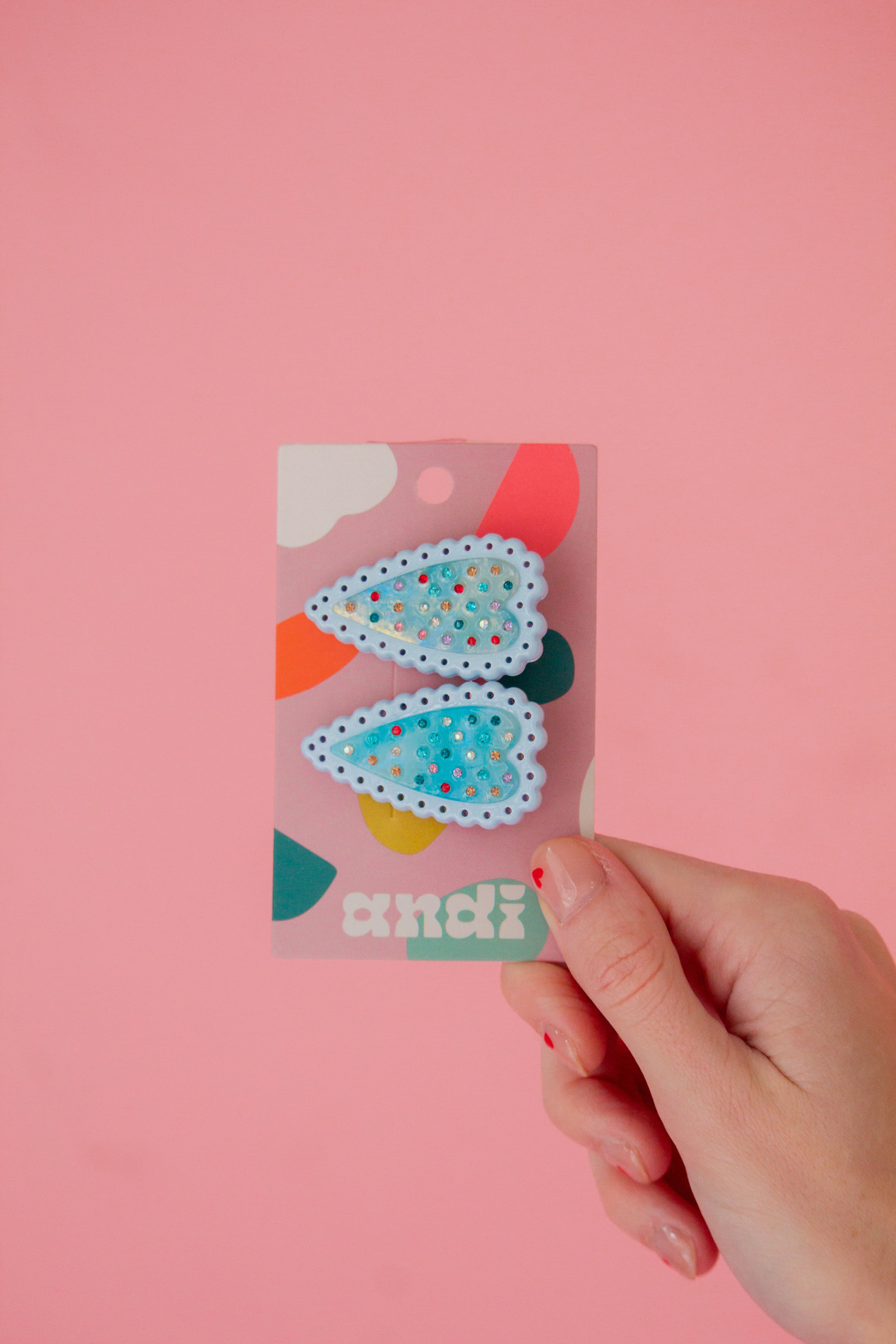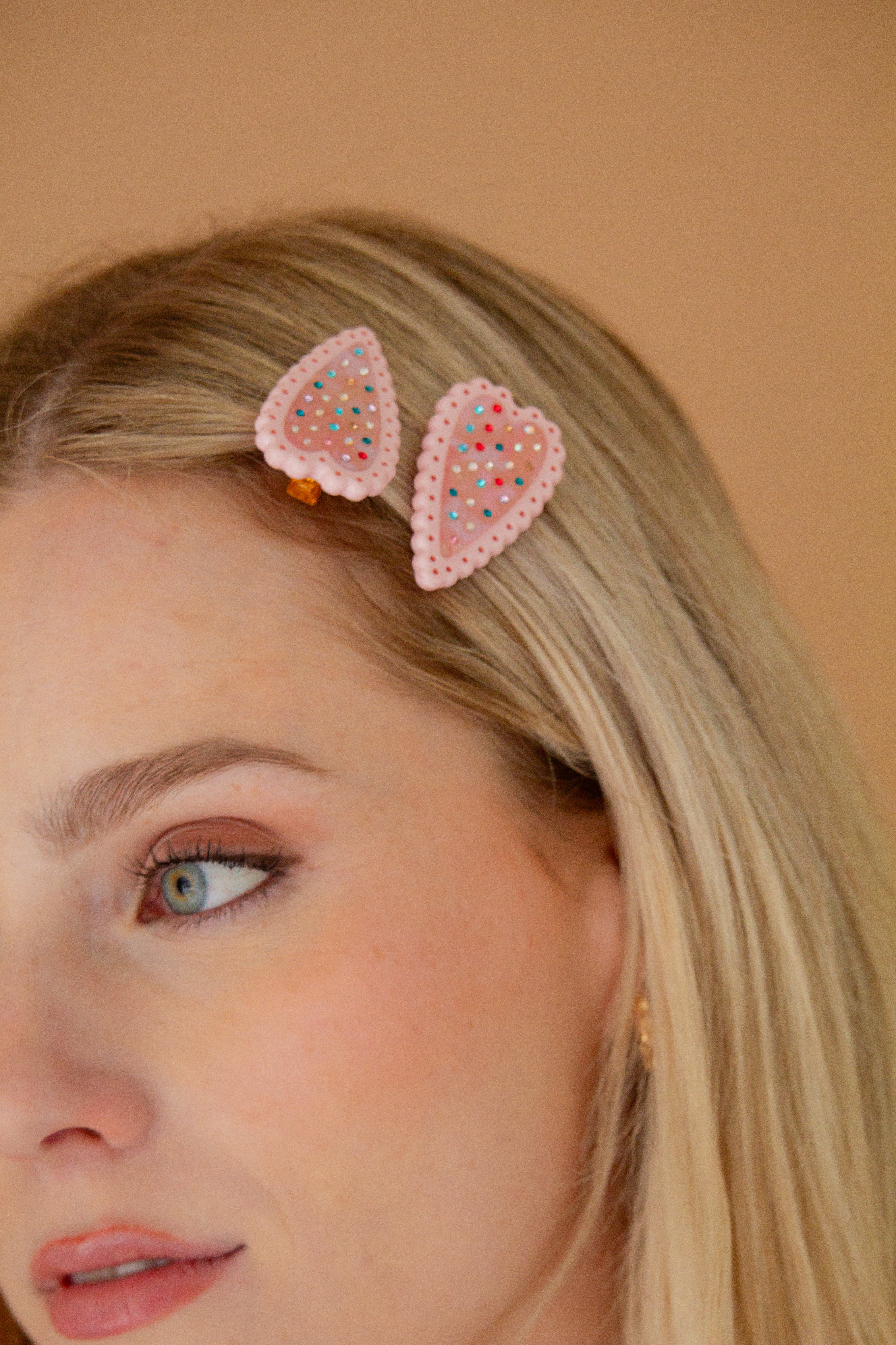 These alligator clips are to die for, and are so perfect for every hairstyle and outfit. The cutest heart shape with colorful rhinestones--absolutely adorable for Valentine's. The best accessory to add to any hairstyle for a little something extra.
