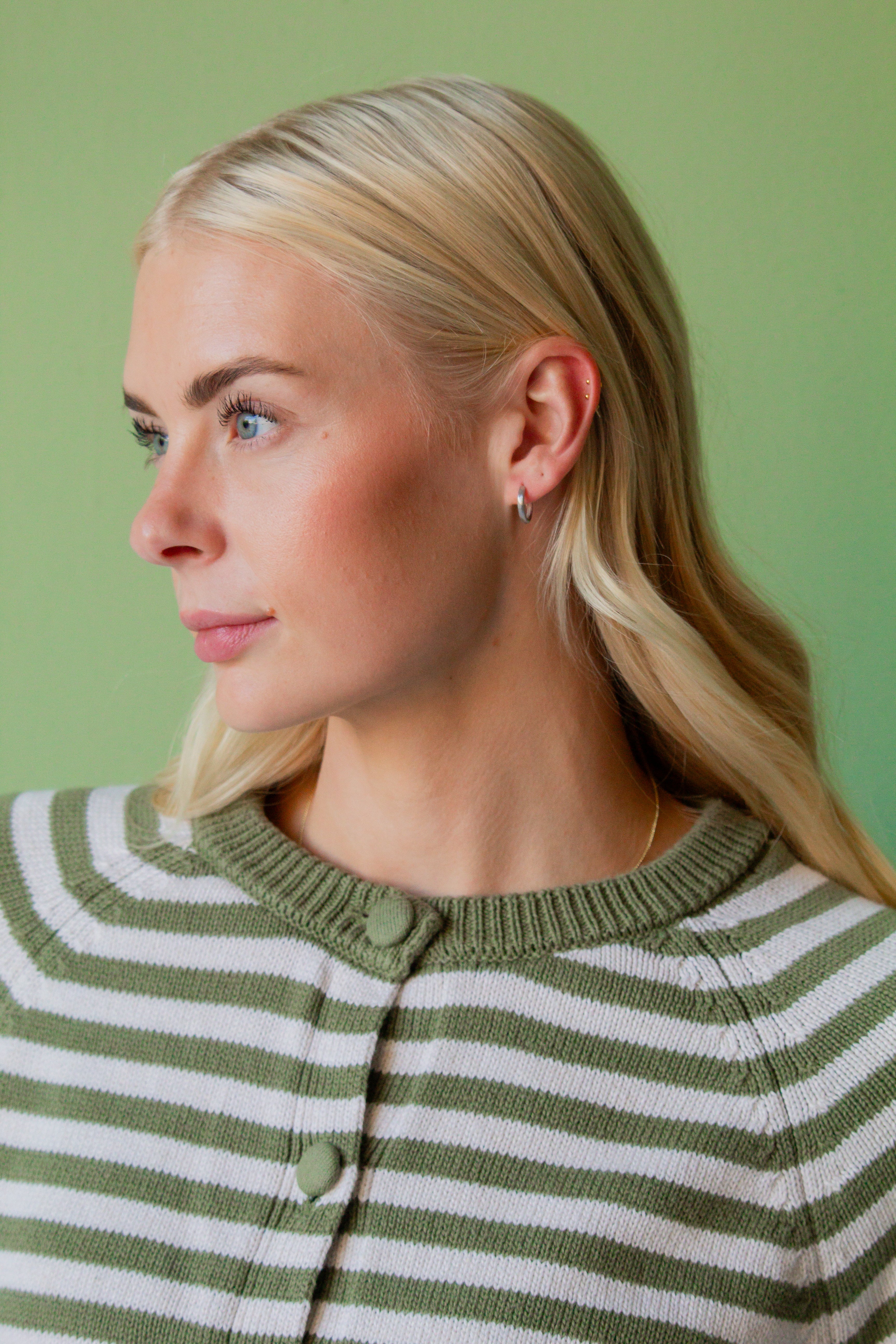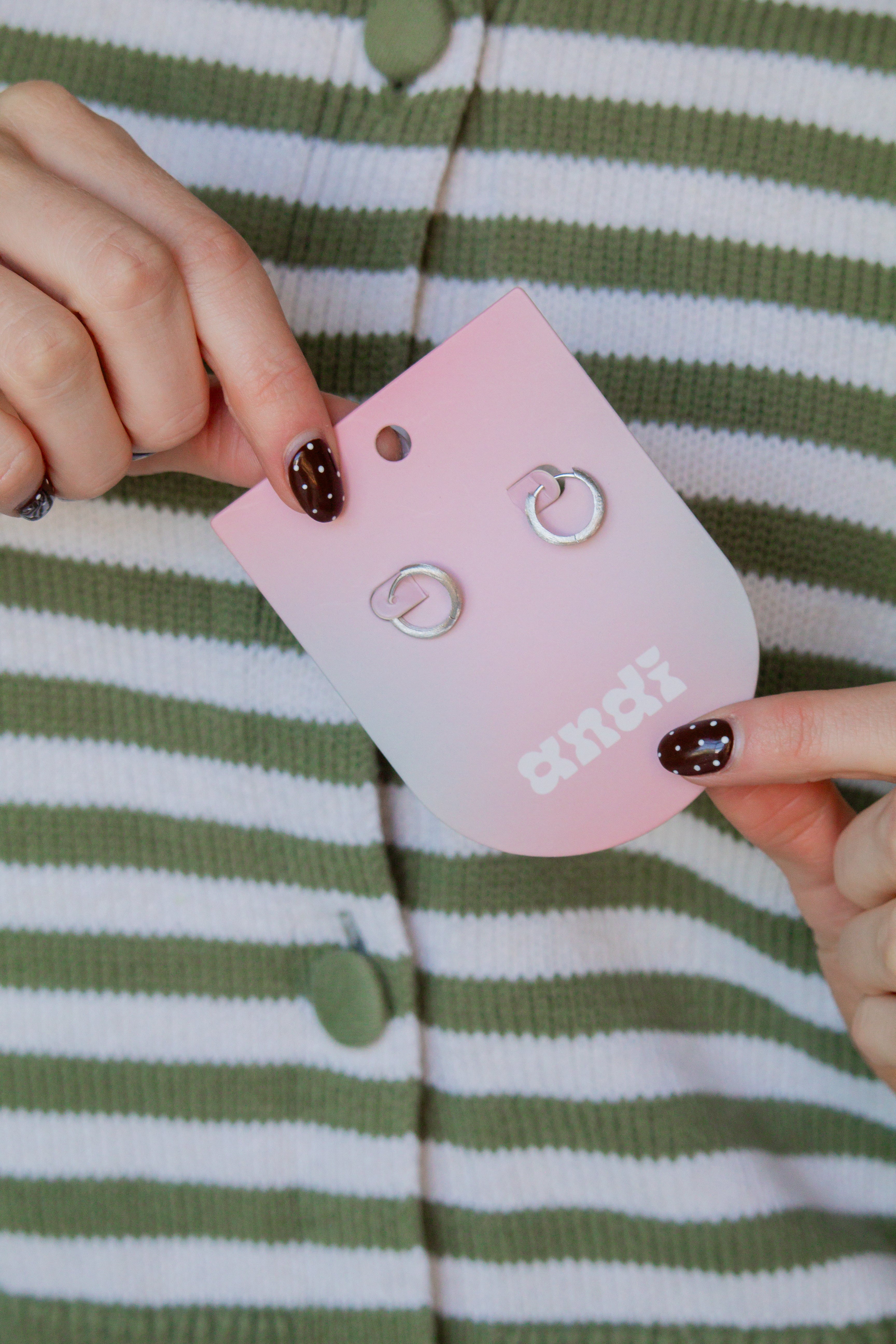 These are the absolute cutest staple earrings! They're the prettiest matte silver color, and are 14mm in size. These are made out of a sterling silver material, so they won't turn your ears green!