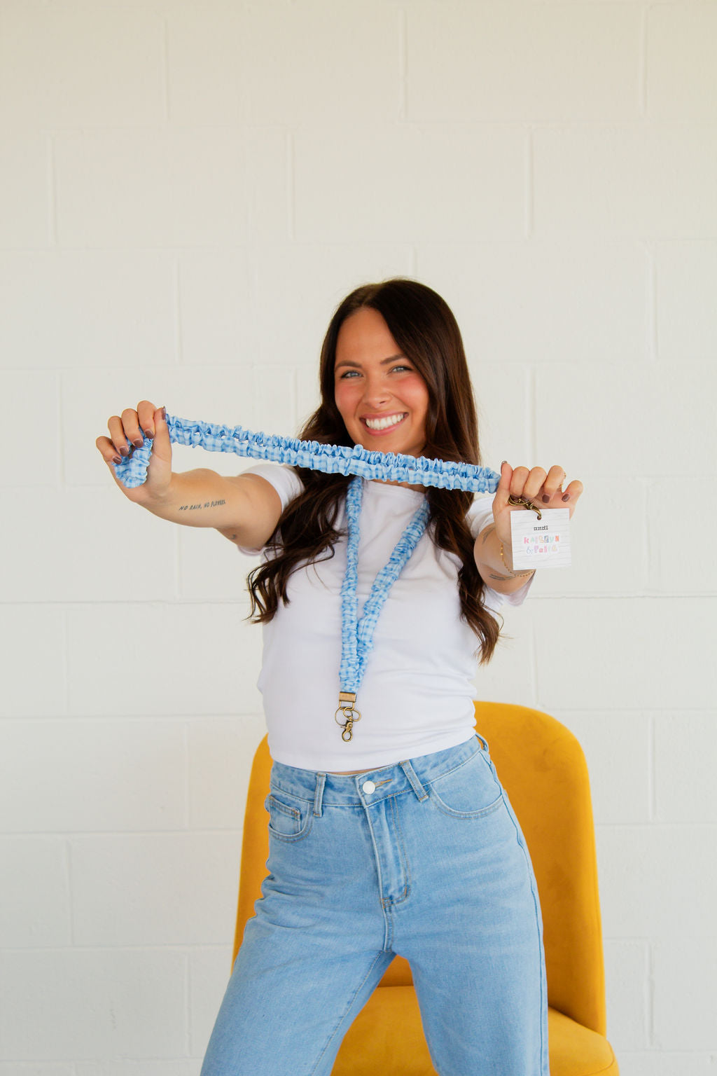 This lanyard is part of our Andi X Kaitlyn & Faith Collection! This one is an absolute must have. It's the cutest blue gingham pattern coming in a nice, durable linen-like fabric. This one will be perfect to wear all year round! You can't go wrong with it--it'll go with all your upcoming outfits. Gone are the days of full hands with no pockets; our lanyards give you one less thing to worry about.