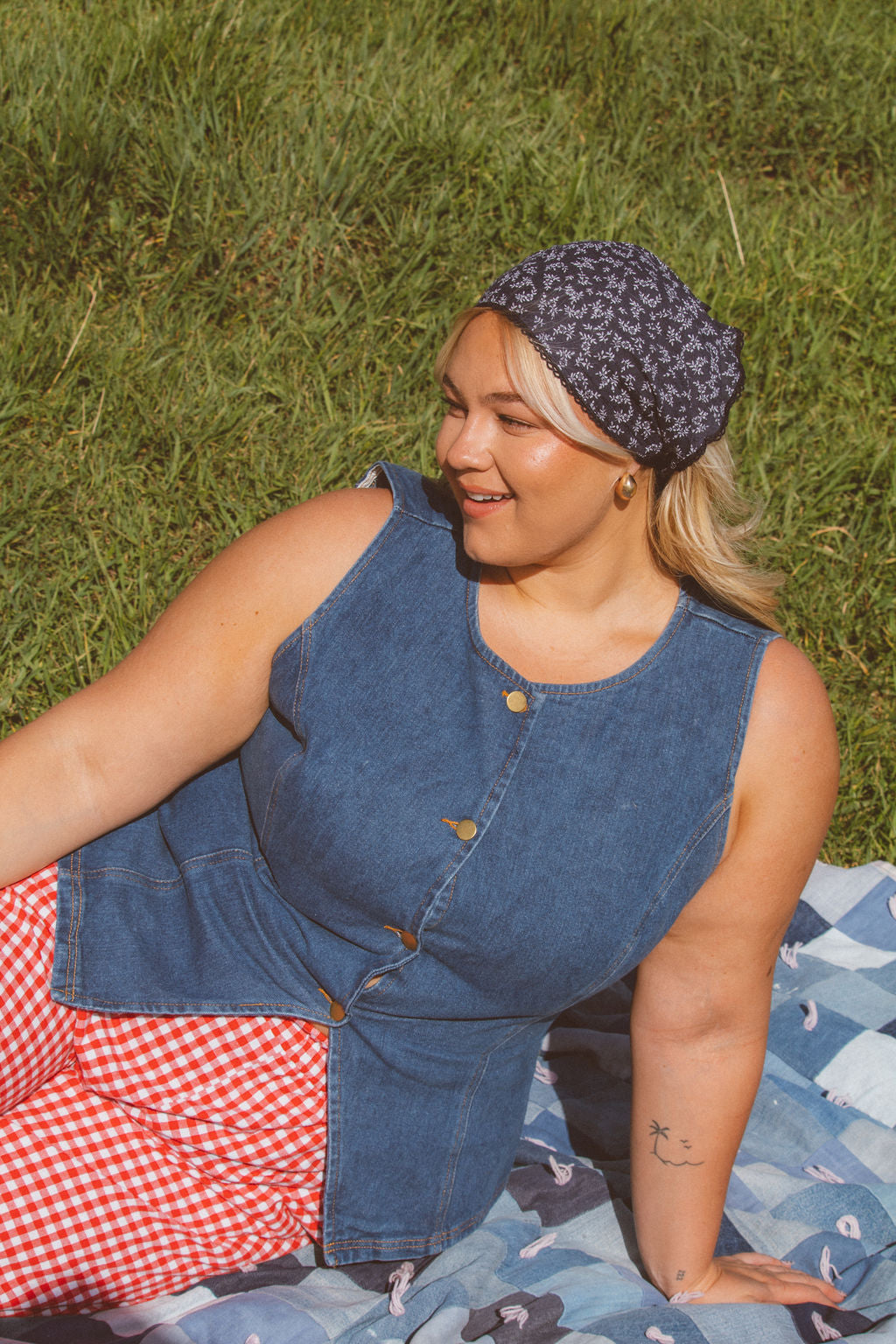 Our Andi hair bandanas will be your next, everyday essential. Need a casual or quick hairstyle? A beautiful addition to a ponytail or bun? Andi’s bandanas have your back! This navy and white floral pattern on a soft cotton fabric will be the comfiest and cutest addition to your accessory bag.