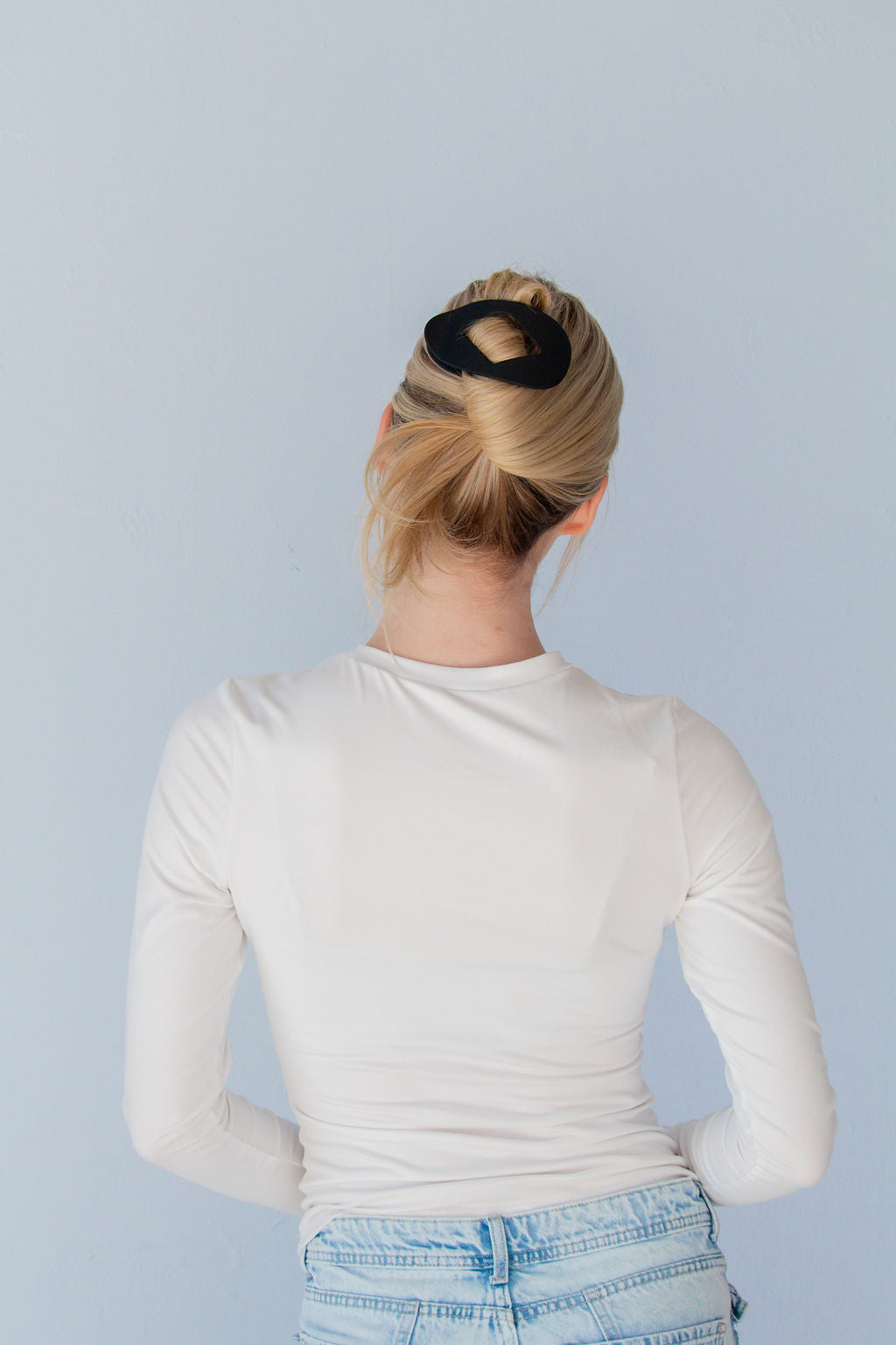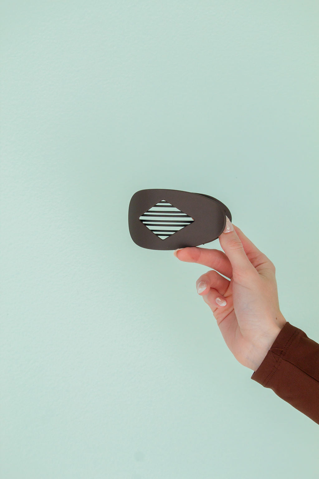 This is a large size flat claw clip measuring at 4 inches, and is absolutely adorable. It comes in the best neutral colors and has an oval shape with a cute diamond cutout shape in the middle. I love these clips for pilates, driving, or the gym!!