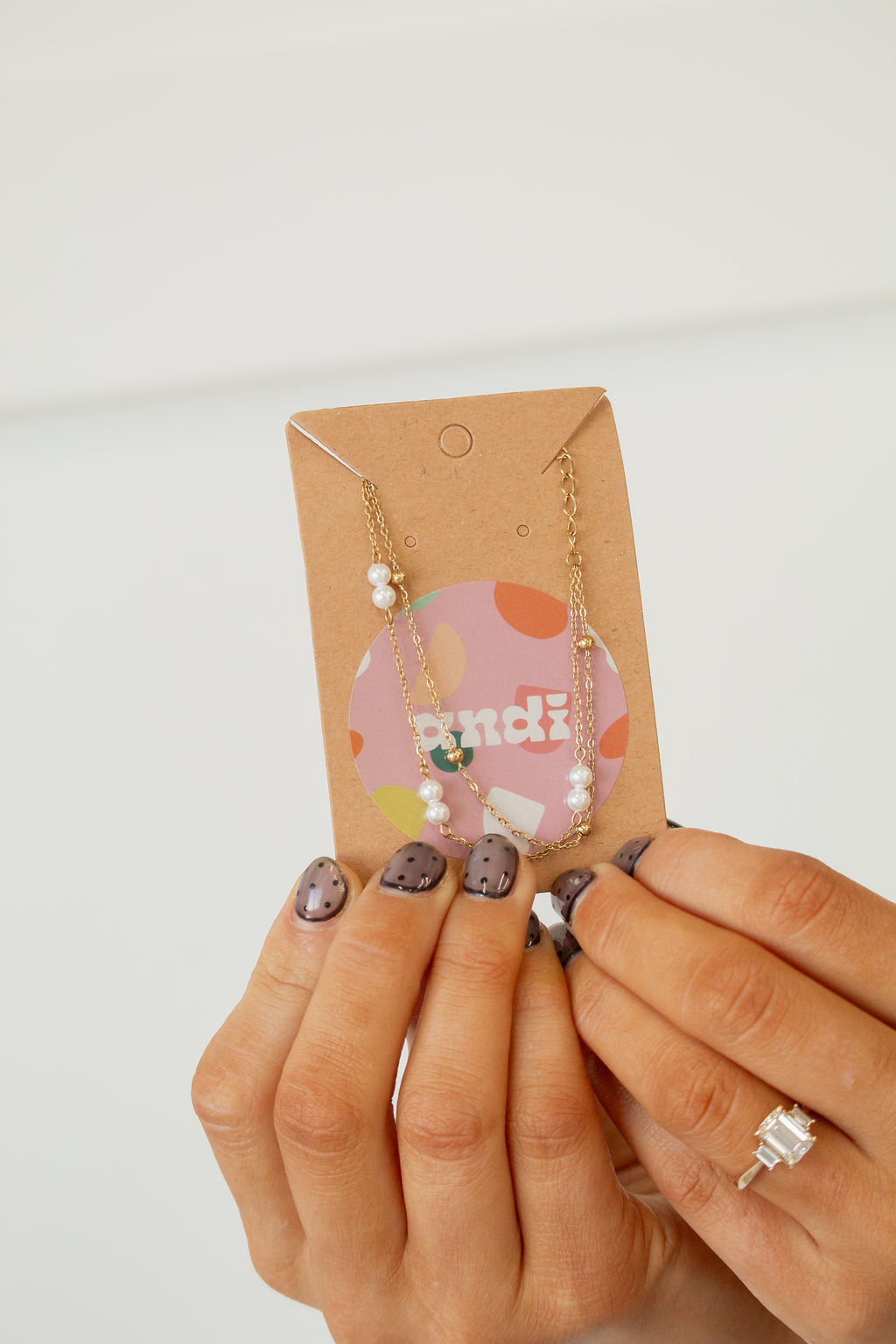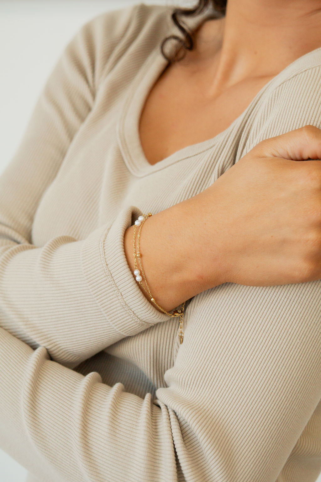 It's a stunning gold chain bracelet with the prettiest gold & pearl accents that’ll look great with absolutely everything. It's made out of a high quality stainless steel material that is water/tarnish resistant making it perfect for everyday wear.