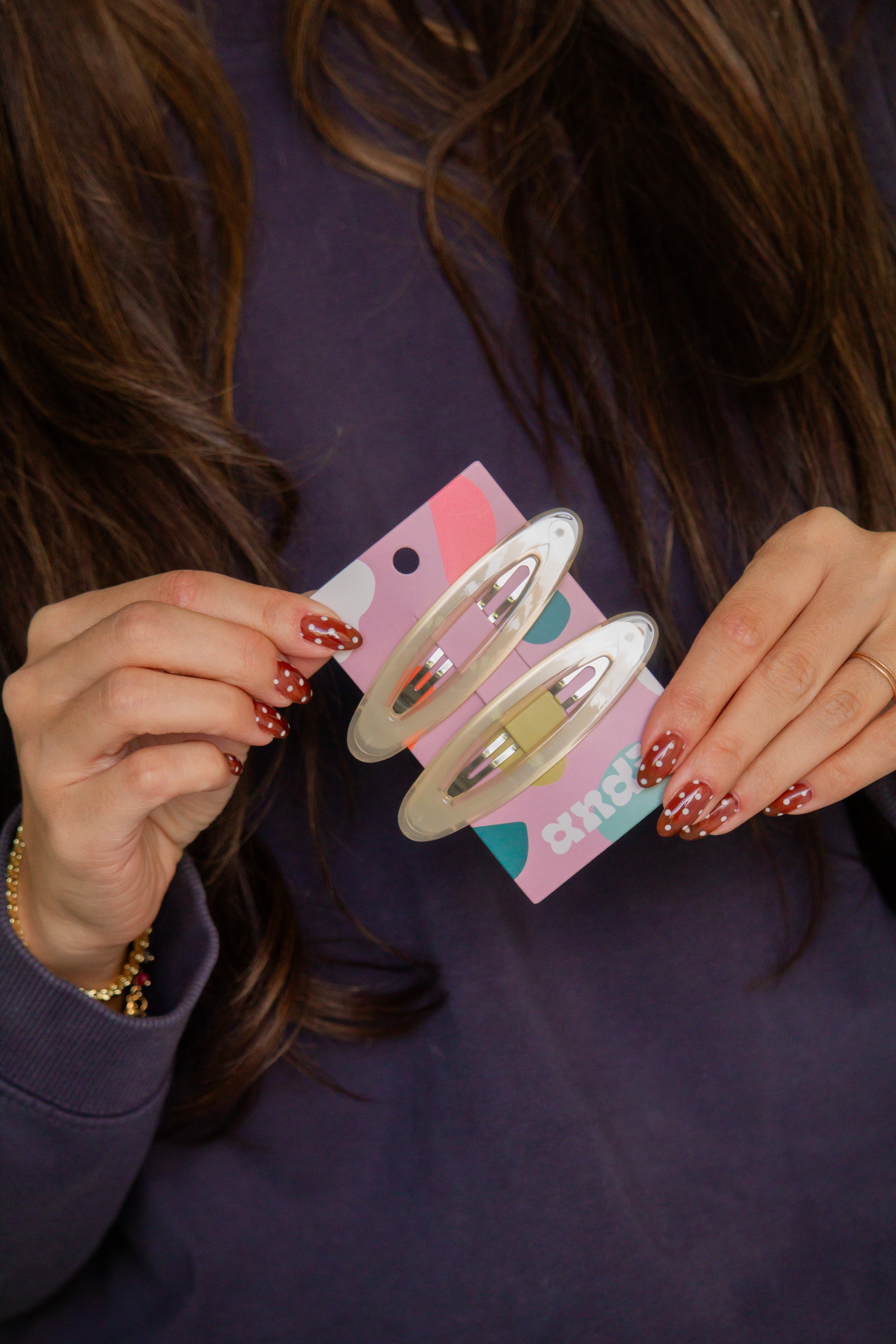 These claw clips are a must for your accessory bag! Our clips put a beautiful ANDI touch on the hair clips you thought you knew. Every Andi clip is specifically made to hold your hair as cute as humanly possible, all day long. These snap clips come in packs of two, and three gorgeous colors! They have a unique but simple, oval cutout shape. Pair this with your favorite casual outfit, date night dress, or work fit!