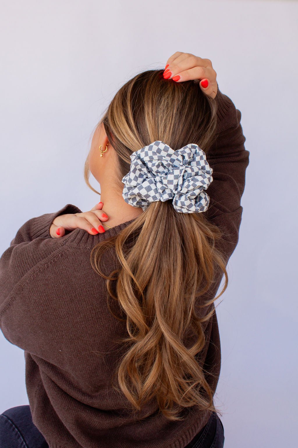 Andi x Rad Rev Grey Checkered Jumbo Scrunchie