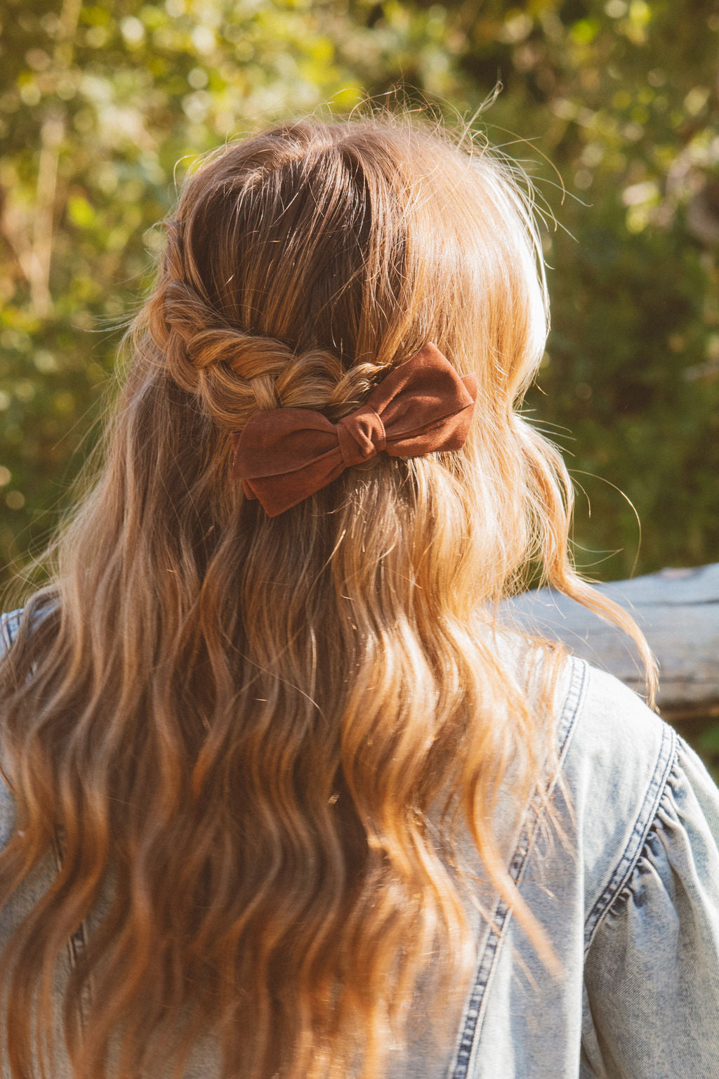 This is truly the most stunning suede bow barrette! It's the prettiest tone of brown, and is so perfect for this time of year. The cutest accessory to add to any hairstyle for a little something extra. The barrette measures 3 inches long, so you can fit a good amount of hair into it.