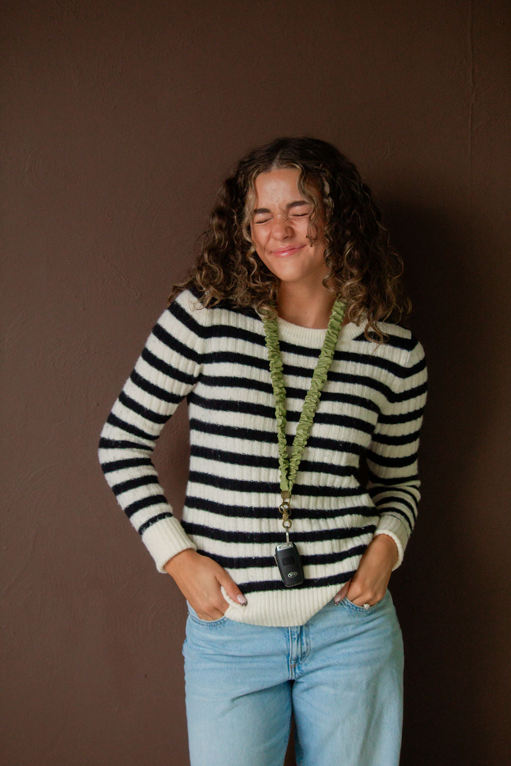 This lanyard is an absolute must have! It's the prettiest shade of green in a nice, leather-like fabric. This one will be perfect for the Fall & Halloween season, you can't go wrong with it--it'll go with all your outfits this fall! Gone are the days of full hands with no pockets; our lanyards give you one less thing to worry about.