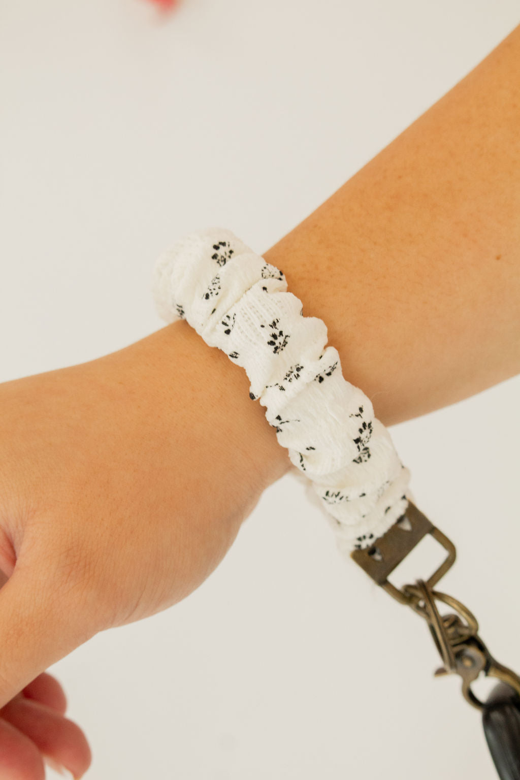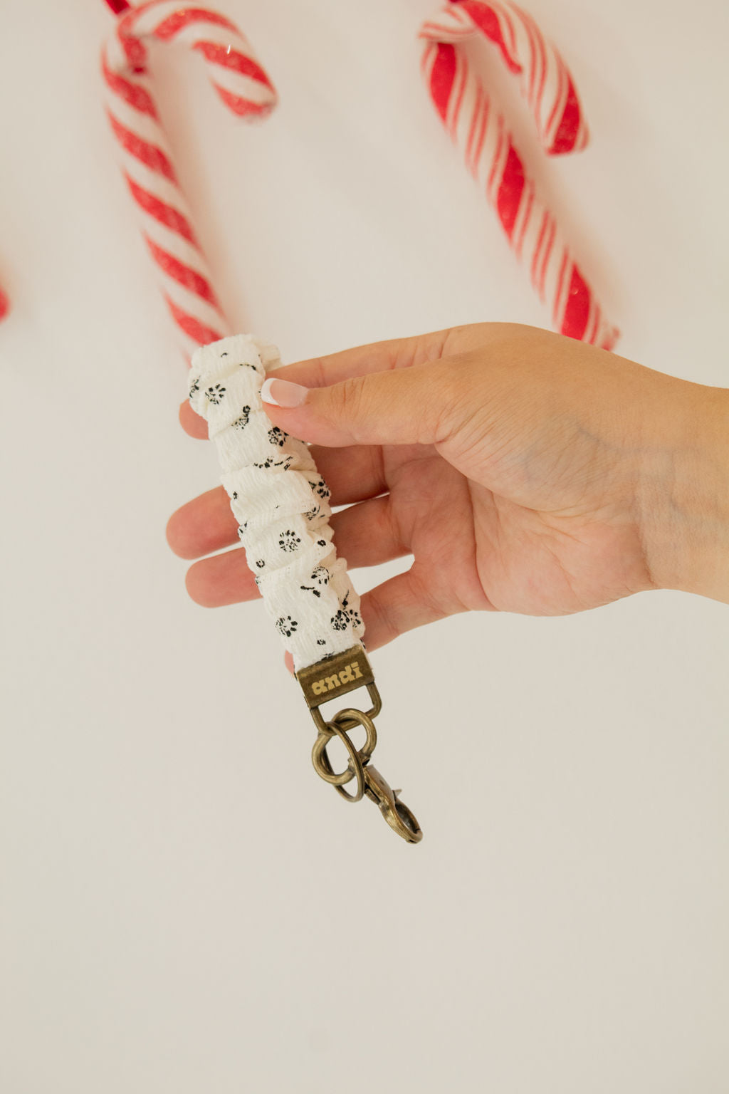 Andi keychains are the cutest you'll find! It has a little black floral pattern on it with the cutest texture. I love the neutral colors. Get this to hold all your necessities and keep your pockets and hands free while adding a cute and stylish flair.