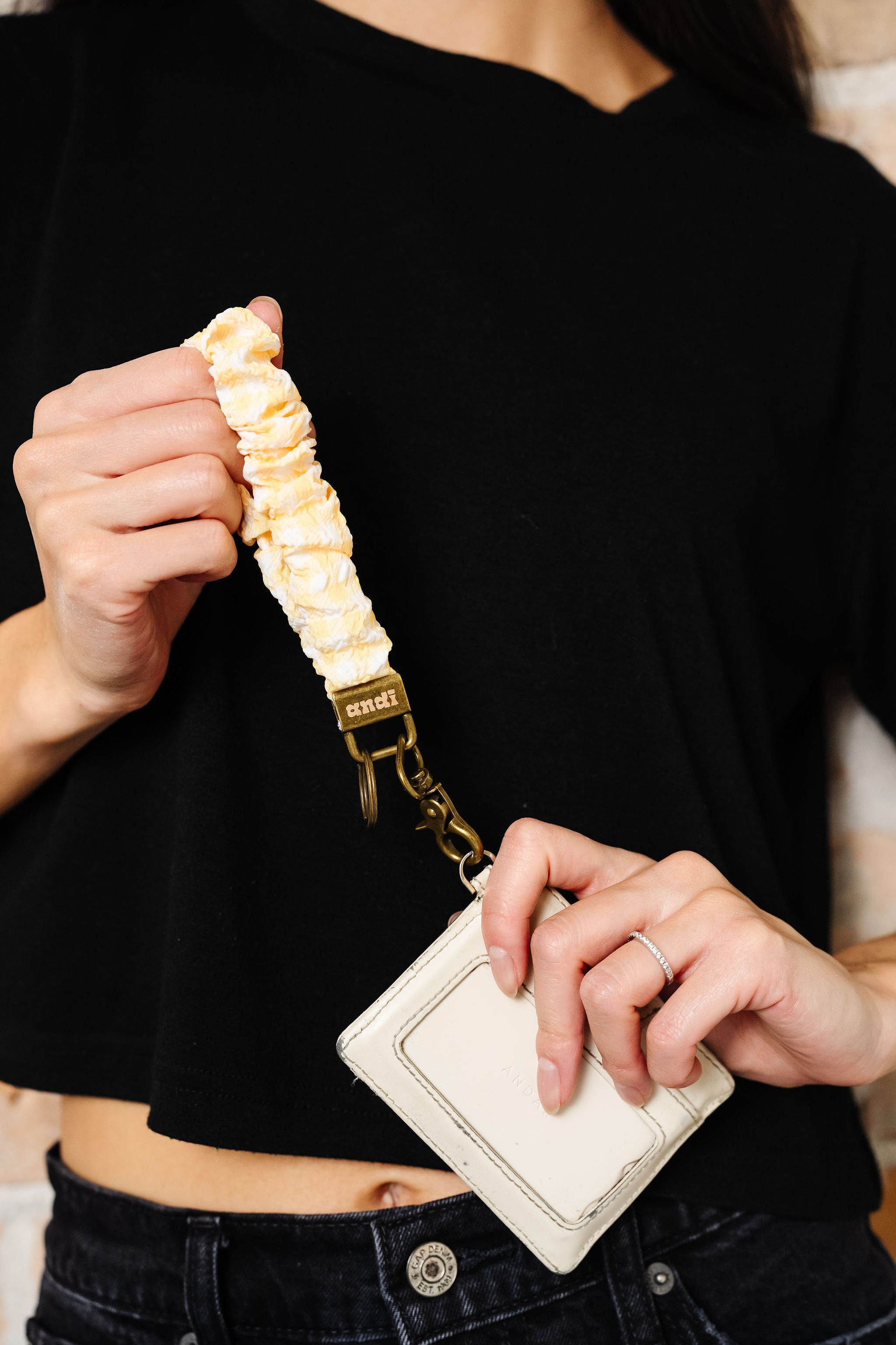Andi keychains are the cutest you'll find! This keychain is the perfect yellow and white combo in our fav gingham print. This one will be perfect for back to school season, as well as all year round. You can't go wrong with it--it'll look cute with all your outfits! Get this to hold all your necessities and keep your pockets and hands free while adding a cute and stylish flair.