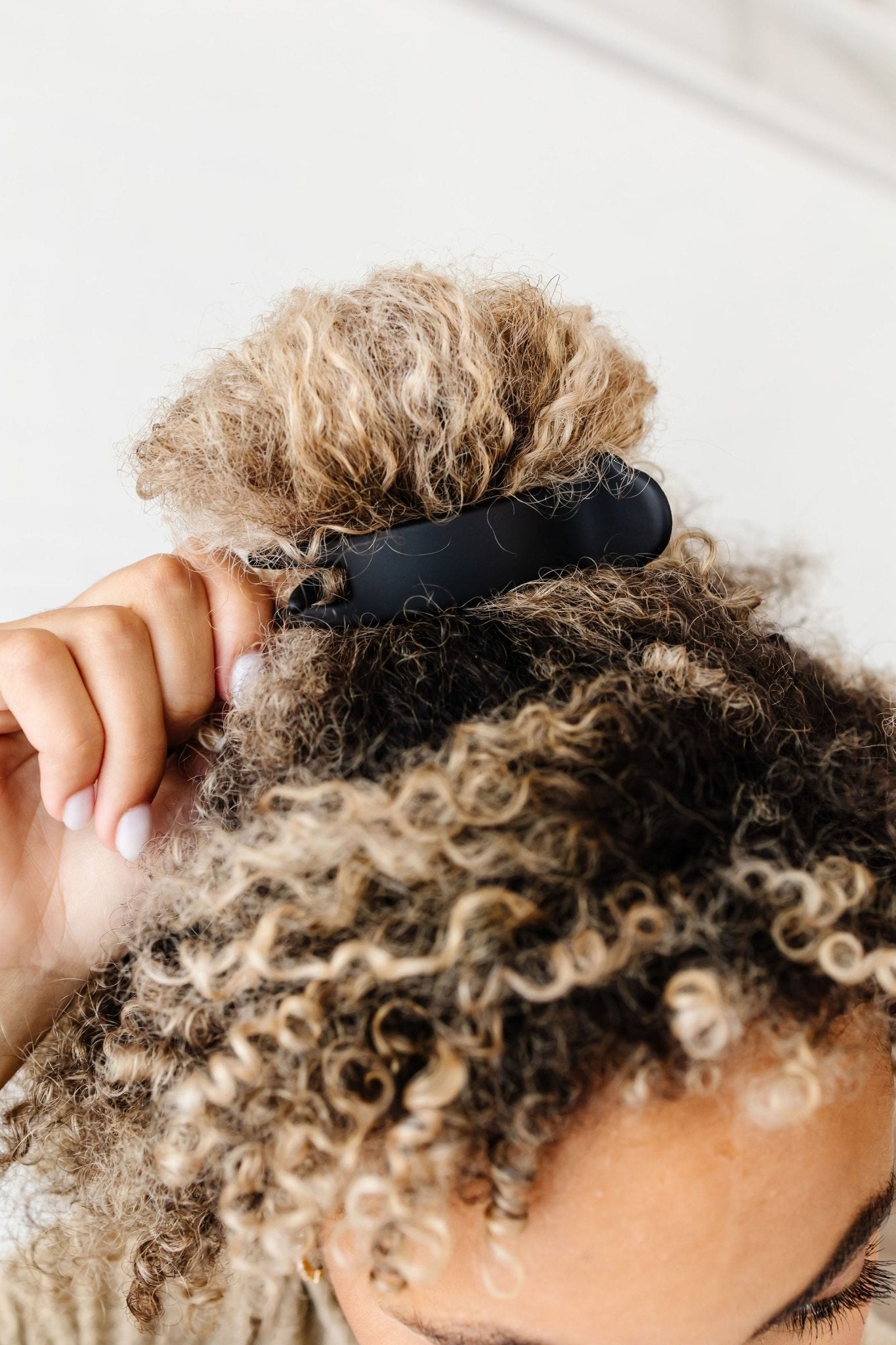 This is the perfect claw clip for you thick hair ladies!!! It is the cutest matte black color and it measures 3 inches deep. It is a perfect clip for securing a super thick ponytail or securing a bun to your head like pictured. It holds so well and looks super simple and chic. I love this new giant size!!