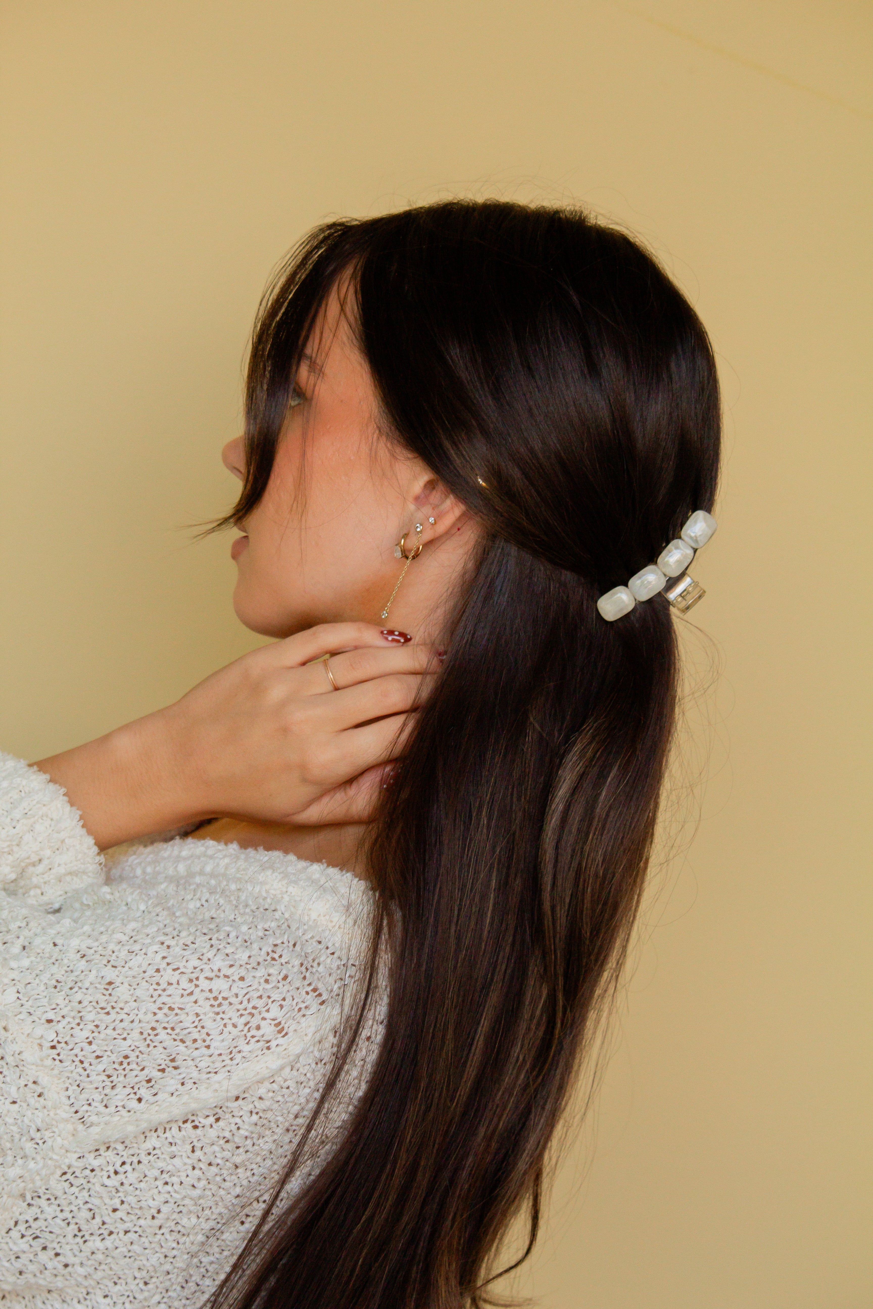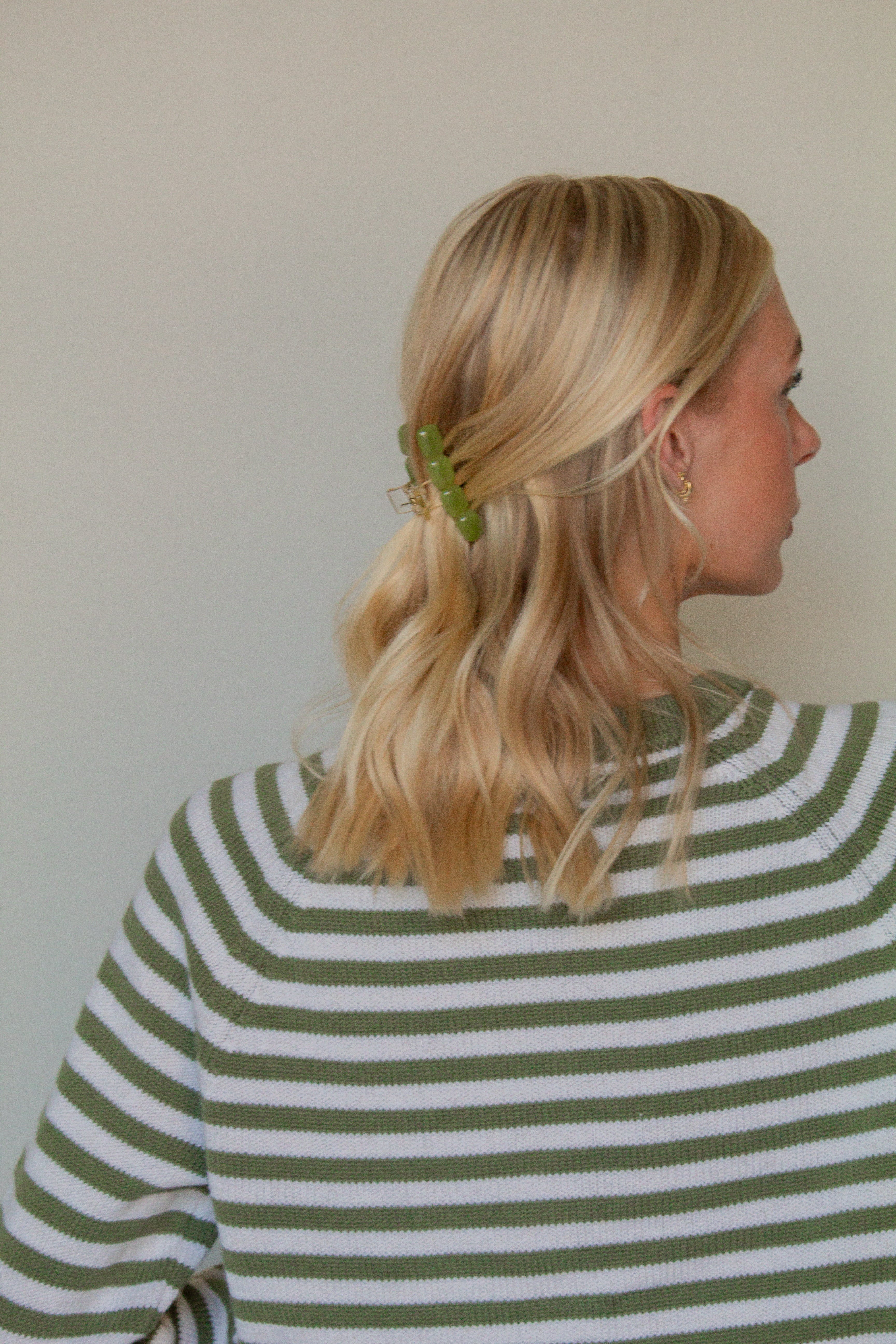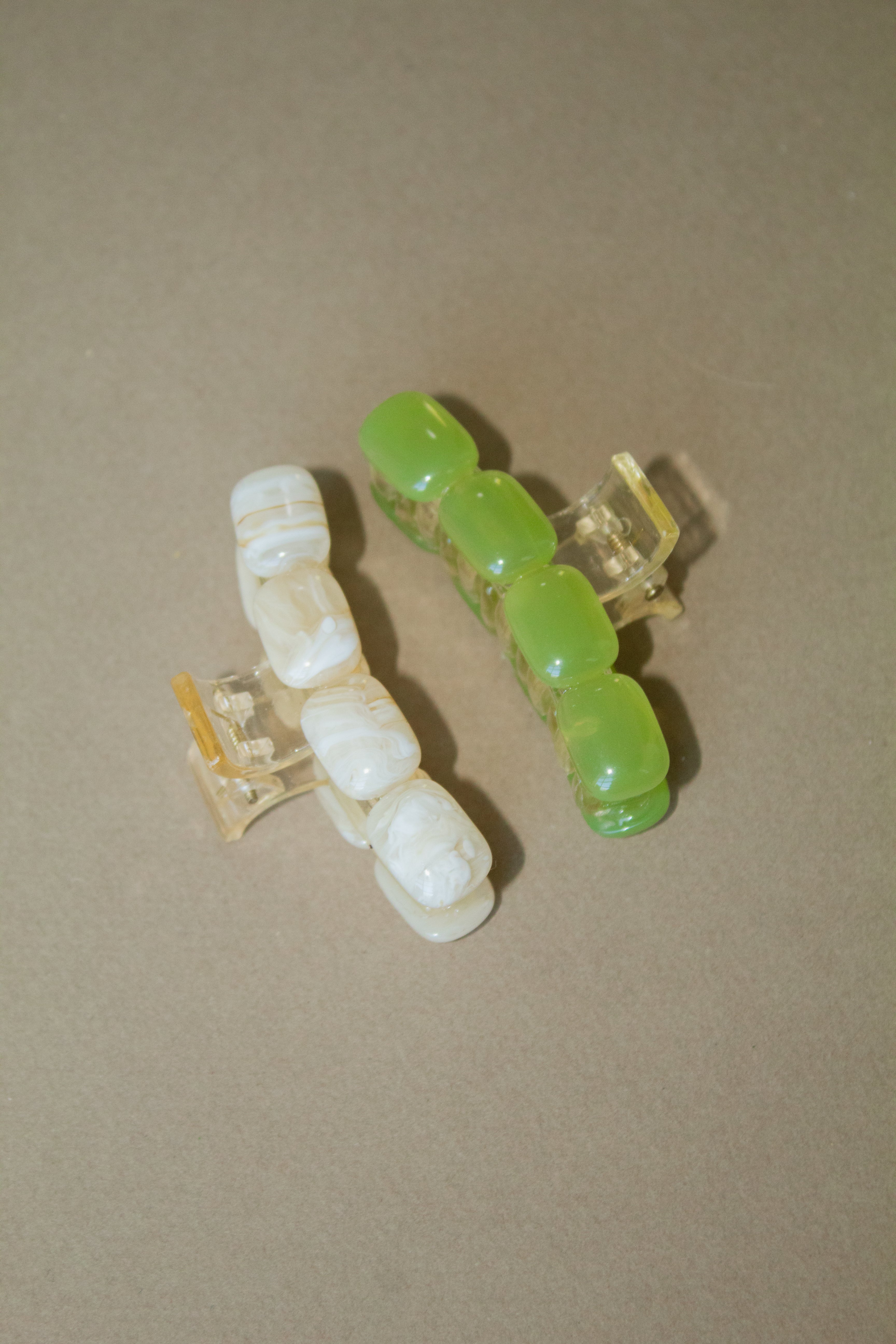 This darling claw clip is so perfect for everyday and the fall season! It comes in the perfect green color, as well as a stunning marbled cream. The best way to elevate your updo for the day--this is a small size 2.5 inch claw clip.