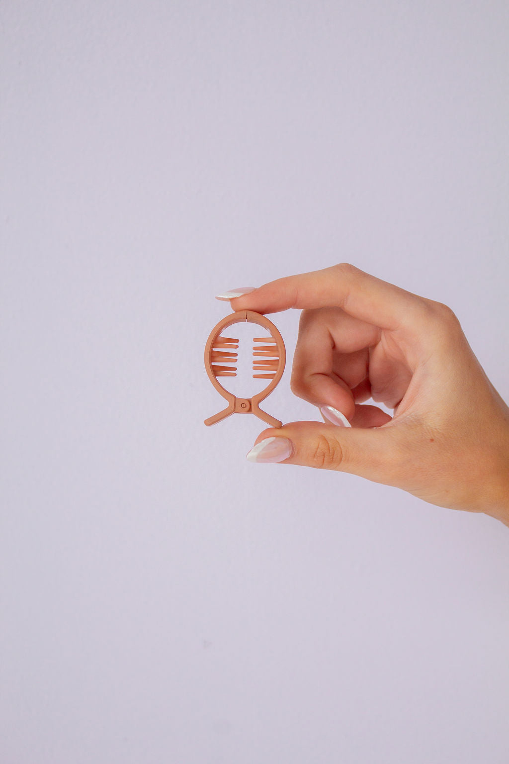 These are the perfect ponytail claw clip in the cutest colors! I love the little detail on them and it measures less than 1 inch wide. I absolutely LOVE this unique style of clip for covering up your ponytail holder & level up your ponytail game!!