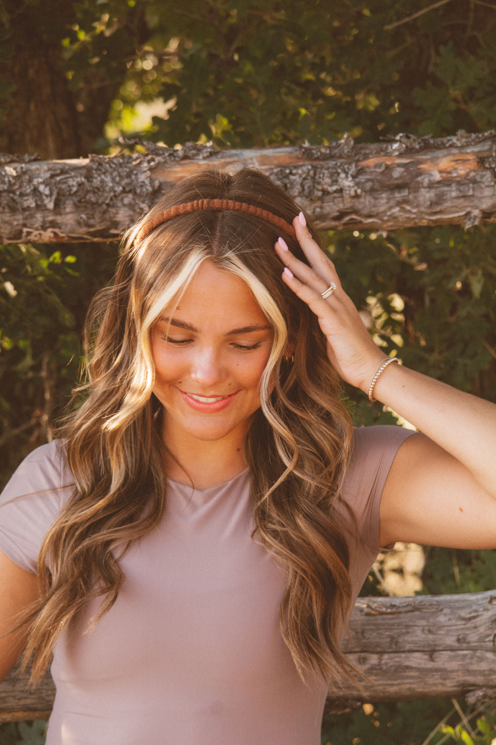 Andi is known for its unique and beautiful products, and nothing beats our headbands. This is a thinner sweater headband that comes in three different colors. In green, beige, and brown it will effortlessly match any vibe and any occasion. You won't even know you're wearing it!